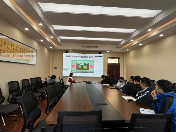 翟石艳首先为大家介绍了师德师风学习概况,传达了“以案为鉴、以案促改”的指示,随后带领全体党员学习《习近平总书记关于“三个牢固树立”的指示要求》《新时代高校教师职业行为十项准则》《习近平总书记关于“四个引路人”的指示要求》《习近平总书记关于“经师”和“人师”统一的“大先生”的指示要求》《习近平总书记关于“教育家精神”的指示要求》等文件。