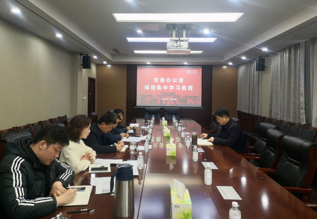 11月30日,党委办公室在行政楼308会议室召开师德集中学习教育专题会议。会议首先集中学习了习近平总书记关于教师队伍建设的重要指示批示精神,对上阶段师德师风集中学习教育的情况进行了通报,并对下一阶段的工作进行了安排部署。