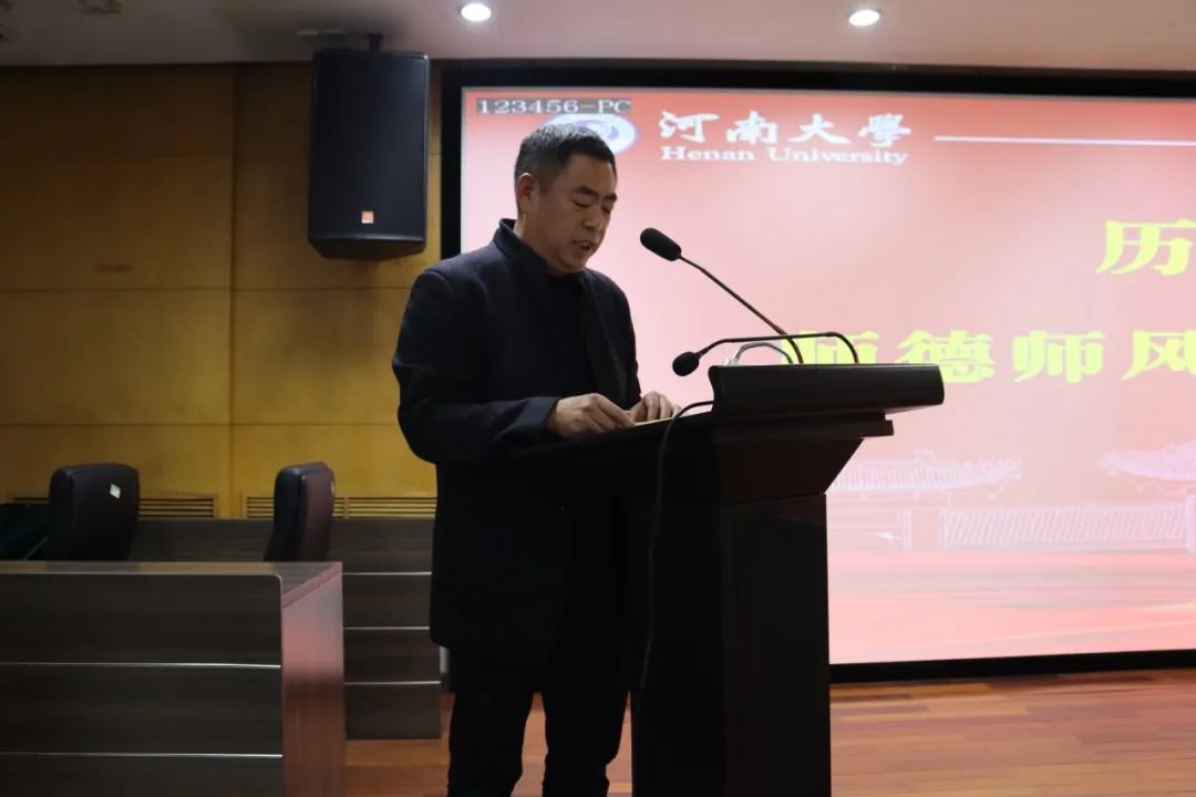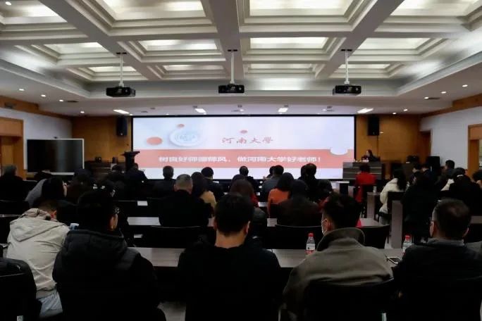 赵炎领学了习近平总书记关于师德师风建设的重要论述,详细解读了《新时代高校教师职业行为十项准则》《教育部关于高校教师师德失范行为处理的指导意见》《河南大学教师师德失范行为处理办法》等制度文件,通报了教育部公布的违反教师职业行为十项准则典型案例,指出要高度重视师德师风建设,大力弘扬教育家精神,牢记为党育人、为国育才的初心使命,严守职业“底线”、严禁行为“红线”,争做专业知识储备丰富、道德品质高尚的优秀教师。