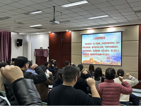 学院党委副书记宋晓勇带领全体教师重温人民教师誓词,增强老师们的责任感和荣誉感。