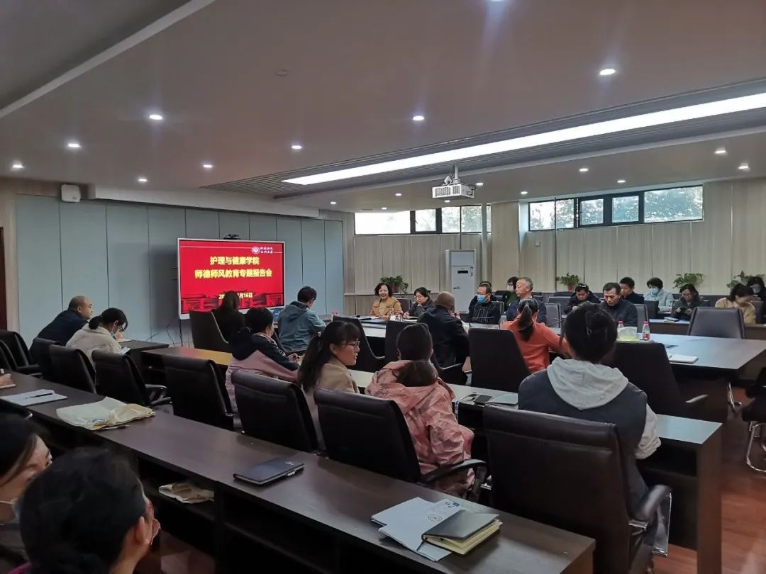 为进一步强化学院教师职业道德规范意识,引导广大教师敬业立学、崇德尚美,营造尊师爱生的育人环境,11月16日下午,护理与健康学院在二楼会议室召开师德师风专题集中学习会,校党委教师工作部副部长赵炎应邀作师德师风专题报告。学院全体教职工参加学习会,会议由院党委书记谢纳泽主持。