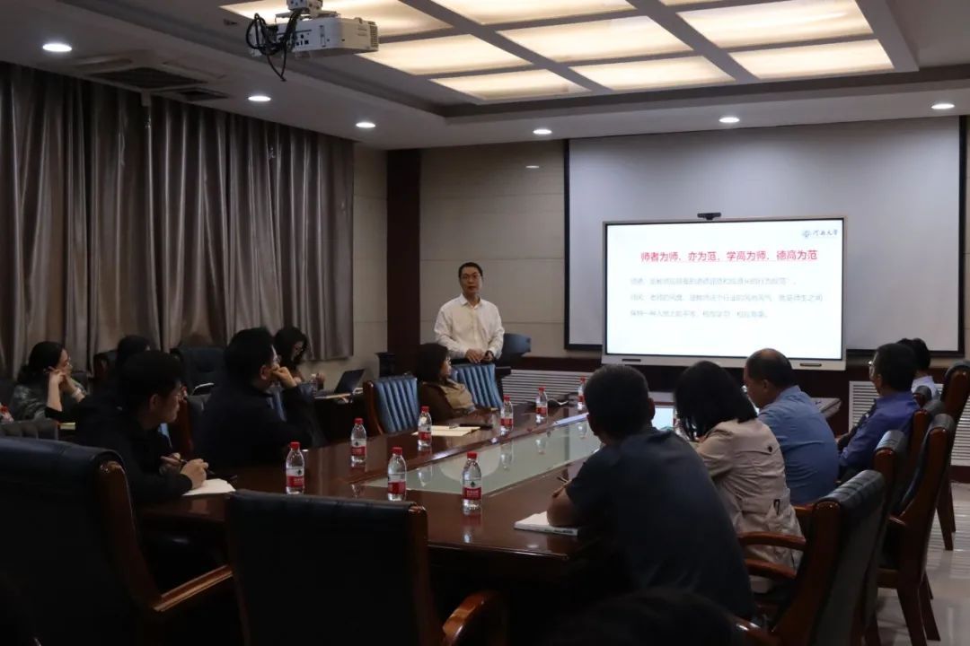 张大乐首先向与会老师传达了学校党委教师工作部就加强师德师风建设的工作要求和文件精神。随后,农学院党委书记王磊从学院本科生基本情况、立德树人要求、师德师风教育、教学与科研之间的关系几个方面展开,带领老师们认真学习了习近平总书记关于教师队伍建设的重要论述和习近平总书记教师节重要指示精神,解读了新时代师德师风建设相关政策,并根据教育部公开曝光违反教师职业行为十项准则典型案例开展警示教育。“大学之道,在明德,在亲民,在止于至善”。他表示,教师是立教之本、兴教之源,教师队伍的素质与教育质量紧密相连,而师德师风问题则是评价教师队伍素质的第一标准。今后,学院将积极开展持续性常态化师德师风学习教育,切实加强师德师风建设,营造崇德尚美、风清气正的育人环境。