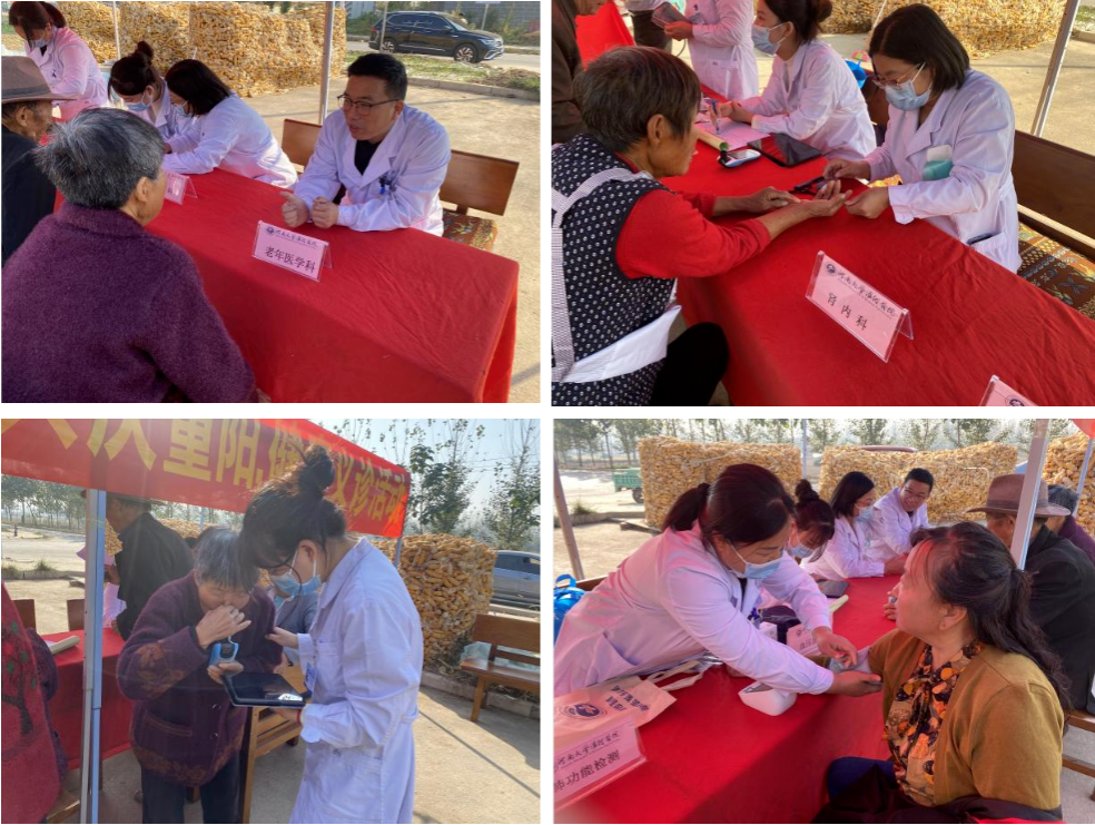 一大早,来自河南大学淮河医院全科医学、肾内科、呼吸与危重症医学科等多个学科的专家就来到曲兴镇大蔡村,为村里的老年人送上“健康祝福”。活动现场,专家们耐心细致地接待前来就诊的老年人,仔细询问身体健康状况和日常生活情况,耐心为他们测血压、血糖、做呼吸功能检测等。
