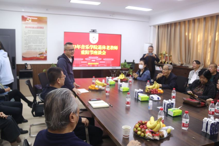 10月20日下午,在重阳节来临之际,我院举行2023年音乐学院退休老教师重阳节主题活动。活动由座谈会、健步走等环节组成。学院近20位退休老教师代表兴致勃勃地参加了本次活动,院党委书记王志国出席活动,副院长徐晏、离退休党支部书记王新平、闫威等部分师生到会。大家欢聚一堂,互致问候,互送祝福,共话情长。