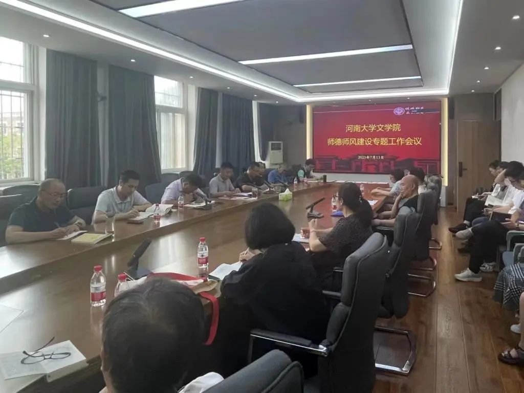 7月13日上午,文学院师德师风建设专题工作会议在学院二楼会议室举行,会议以线上线下相结合的方式进行,文学院全体教职工参会。