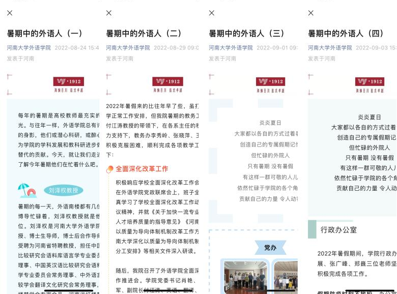 一是涌现出一大批榜样典型。学院评选出47位“我最喜爱的教师”,其中18位教师多次获评此项荣誉,3人荣获河南大学师德标兵和师德先进个人,2人荣获河南大学“最美教师”;五年来,学院获评校级优秀共产党员、优秀党务工作者23人次,5个党支部荣获河南大学“先进党支部”荣誉称号,英语系教师党支部获评校级“党建工作样板支部”,退休职工党支部成功入选河南省“六好”离退休干部党支部创建名单。在各级各类平台累计报道先进典型300余人次。形成榜样在身边,人人可学习的浓厚氛围。