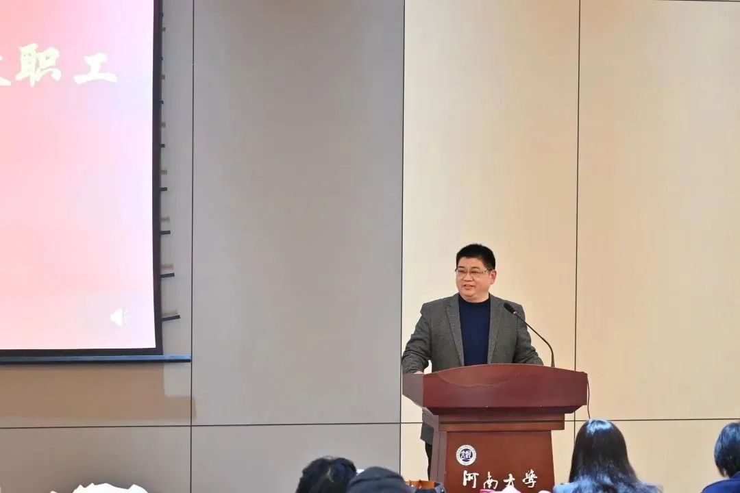 从教40年以上的赵振乾教授作为教师代表发言,他首先向伟大的时代以及母校的培养表示感谢。他表示,庆幸自己选择并从事一生挚爱的艺术教育事业,四十载的教学生涯,既是培根铸魂,也是以美化己。各位教师的青春在河南大学这所百年学府得到了绽放,文化艺术实践得到了大幅提升,人生价值得到了充分实现。他希望,美术学院全体教工继续团结奋进,乘风破浪,共同助力学院事业更上层楼。