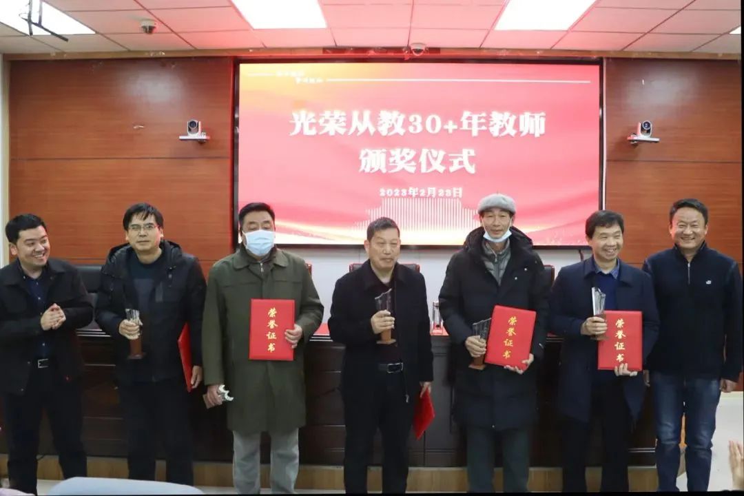 三秩芳华传薪火,桃李满园名远扬。在热烈的掌声中,庞洪铸、韩军喜、张胜利、郭桥等16位从教30年以上教师从院长姬志闯手中接过证书和奖杯。党鸿军向受表彰的老师表示热烈祝贺,并希望全院教职工以他们为榜样,弘扬优良传统,忠诚于党和人民的教育事业,坚守为党育人、为国育才的使命担当,爱岗敬业,奋发进取,不断开拓创新,以更加执着的追求、更加广阔的胸怀投入到教育事业中,为推动学院各项事业发展、推进学校“双一流”建设作出新的更大的贡献。