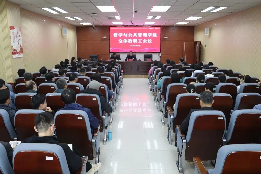 2月23日下午,哲学与公共管理学院新学期教职工大会暨从教30+年教师表彰大会在院第一会议室召开。学院全体领导班子成员和全体教职工参加会议,会议由院党委书记党鸿军主持。