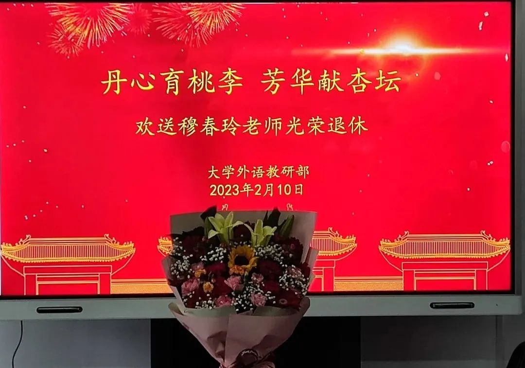 丹心育桃李,芳华献杏坛。2月10日下午,大学外语教研部欢送退休教师座谈会在部小会议室举行。部领导班子成员、读写译第二教研室全体教师以最真挚的情谊欢送在教育岗位上奋斗了近四十年的穆春玲老师光荣退休。