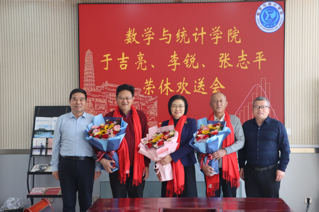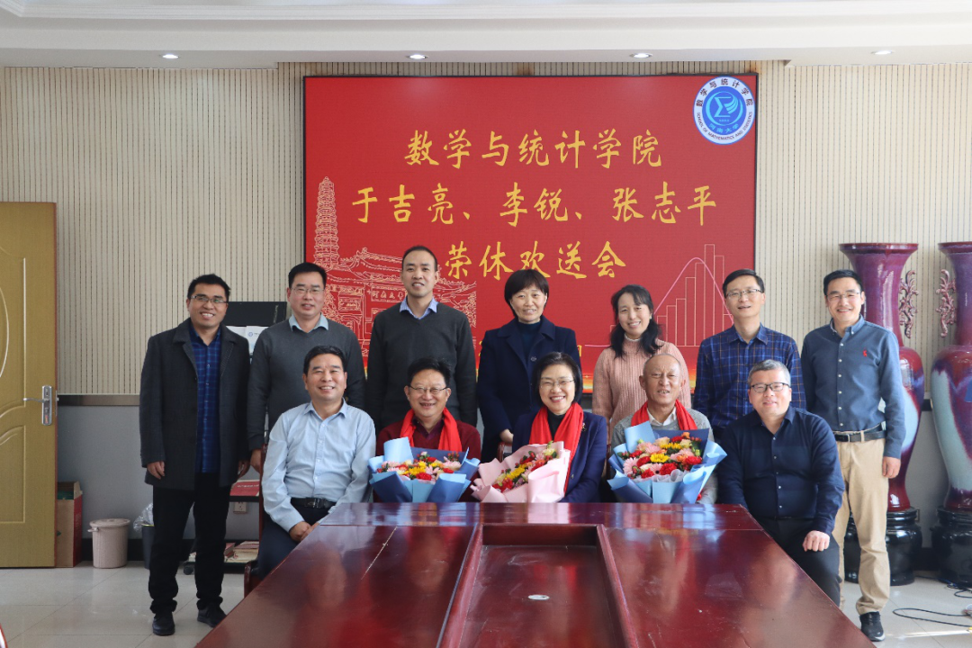 丹心育桃李,回首皆芳华。为充分表达学院对近期退休教职工的关怀与感谢,2月4日上午,数学与统计学院在二楼会议室举行教师荣休欢送会,欢送于吉亮老师、李锐老师和张志平老师光荣退休。院领导班子全体成员、数学教育系系主任和支部书记、院办主任参加欢送会。欢送会由院党委书记史富强主持。