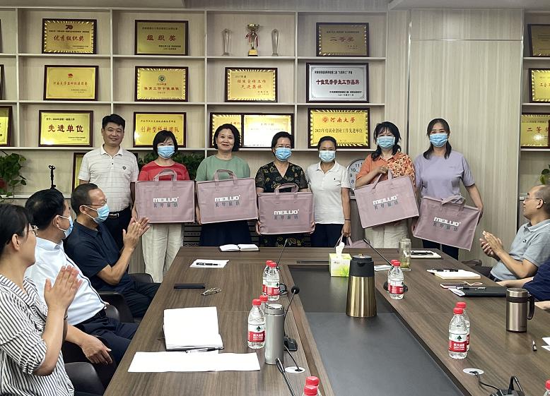 座谈会后,学院领导向从教满30年以上教师一一颁发纪念品并合影留念。