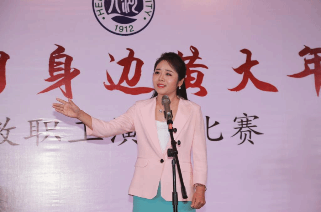 比赛现场气氛热烈,座无虚席。13名进入决赛的老师紧密结合自身学习体会和工作实际,紧扣主题,或慷慨激昂,或委婉入心,从不同角度叙述了身边优秀教师工作、学习和生活中的感人事迹。环境与规划学院朱文博在娓娓道来中诉说了地理学教师们的坚持不懈与勤奋刻苦;文学院张丽珍饱含激情地讲述了佟培基老师与病魔抗争的故事,彰显了大学教师专业、敬业、乐业的真正含义;新闻与传播学院孙玉婷用亲切自然的语言讲述了张豫林老师对河大的眷恋、对工作的坚守和对学生的谆谆教导......老师们声情并茂,标准的普通话、充沛的情感、得体的手势,精彩的表现一次次将现场气氛推向高潮,引发现场爆发出一阵又一阵热烈的掌声。